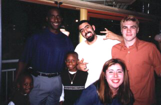 We're posing with Roberto Kelly, baseball player from the New York Yankees who happened to be at the same restaurant as us