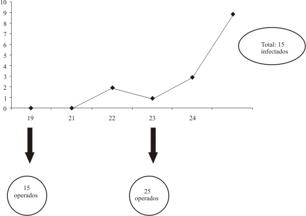 Fig. 3. Pacientes operados e infectados. Hospital Oftalmológico.