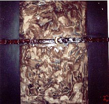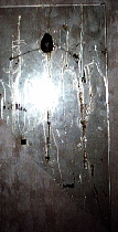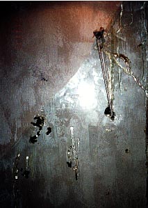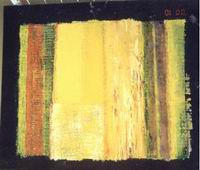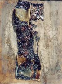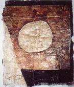 COMO SINFONIA AZTECA AUTOR: DR. JOSE CUKIER Tiene la particularidad de que esta realizada en el dorso de papeles de afiches urbanos. Tiene 1,30 X 1,10,tecnica mixta. |