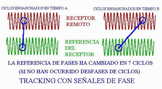 Al controlar en fase, lo que se hace es observar continuamente la evolución del desfase entre la señal recibida y la generada en el receptor; el observable es el desfase, y éste cambia según lo hace la distancia satélite-antena receptora.
