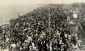 Apenas había pasado el mediodía cuando ese punto oscuro en el horizonte sobre el río marrón y en dirección a Montevideo se agrandó y la muchedumbre por fin estalló en una ovación sólo sobrepasada por las bombas de estruendo o el vozarrón de los locutores de la broadcasting L.Z.O. Esa emisora de La Nación emitía las novedades del viaje no sólo destinadas a los escasos y primitivos receptores, sino también por los altavoces encaramados en los camiones del matutino estacionado desde el día anterior en dos enclaves estratégicos de la avenida Costanera y su balneario municipal: para entonces y por ese medio, la multitud que esperaba al puñado de españoles corajudos, se enteró que, finalmente, la llegada sería la mañana siguiente, el 10 de febrero de ese año 1926.