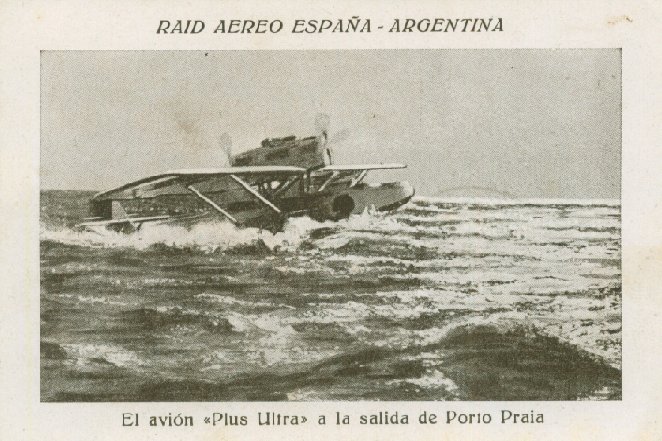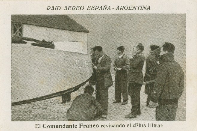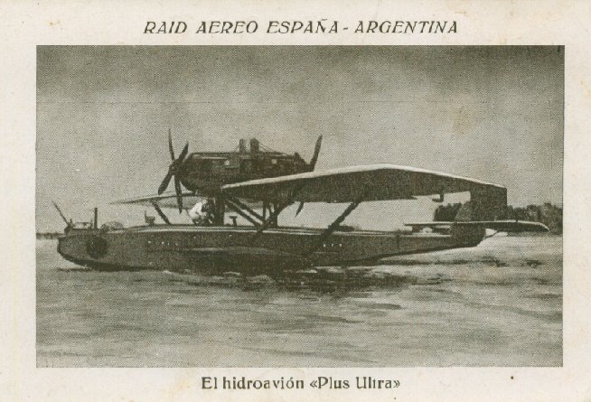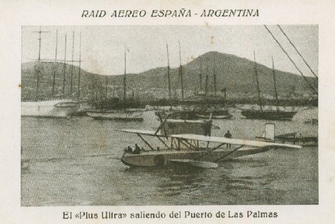 Hasta Canarias llevaron al fotógrafo de Cuatro Vientos, D. LEOPOLDO ALONSO, para que filmara el inicio del viaje. Características técnicas del Plus Ultra : El PLUS ULTRA era un hidroavión del tipo "Dornier", diseño alemán, con dos motores ingleses "Napier", de 450 caballos. Fue construido en Pisa (Italia), entre Junio y Noviembre de 1925. Su nombre militar era W12, y para la identificación telegráfica se le denominaba E.D.R.12, y fue rebautizado por Franco como PLUS ULTRA, lema |