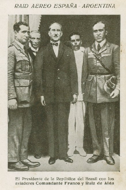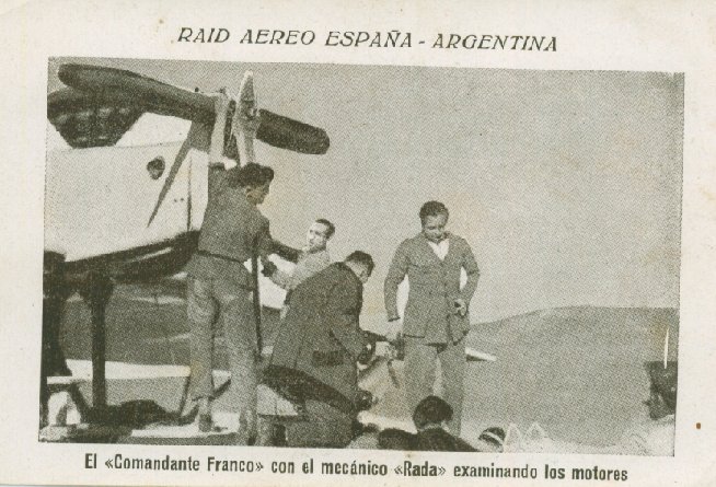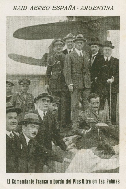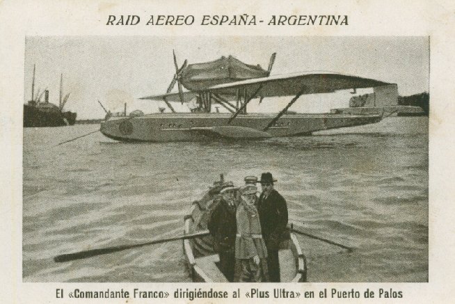 Con la reducida tripulación que Franco había elegido entre quienes también se habían alistado en el frente del conflicto africano, había partido como un modernísimo Colón, repitiendo ciertos ritos compartidos con sus compañeros de aventura: alborotaron todo Huelva, durmieron en La Rábida, escucharon misa frente a la Virgen de los Milagros -se prometieron llegar hasta Buenos Aires, proeza hasta entonces nunca lograda con avión alguno- y con el agua marina como pista levantaron vuelo hacia Las Palmas en la mañana del 22 de enero de 1926. Se dejaron acompañar sólo en ese tramo por el representante de La Nación, Leopoldo Alonso.