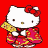 Hello Kitty con las ropas tradicionales japonesas. Tambén apareció