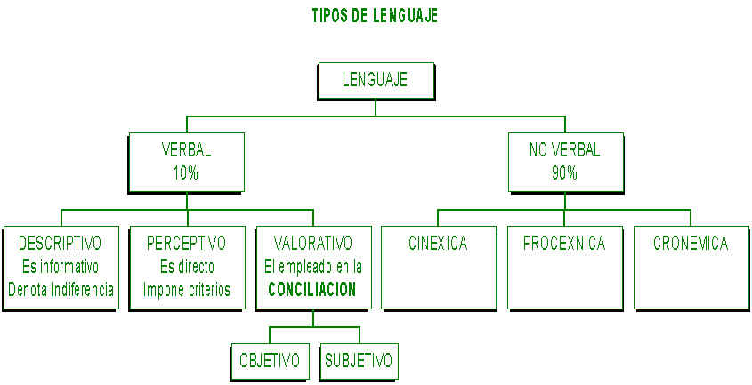 El lenguaje empleado por el Conciliador, o mejor dicho, el lenguaje que busca el Conciliador para que las partes lleguen a un acuerdo feliz, es el lenguaje verbal, valorativo y subjetivo.