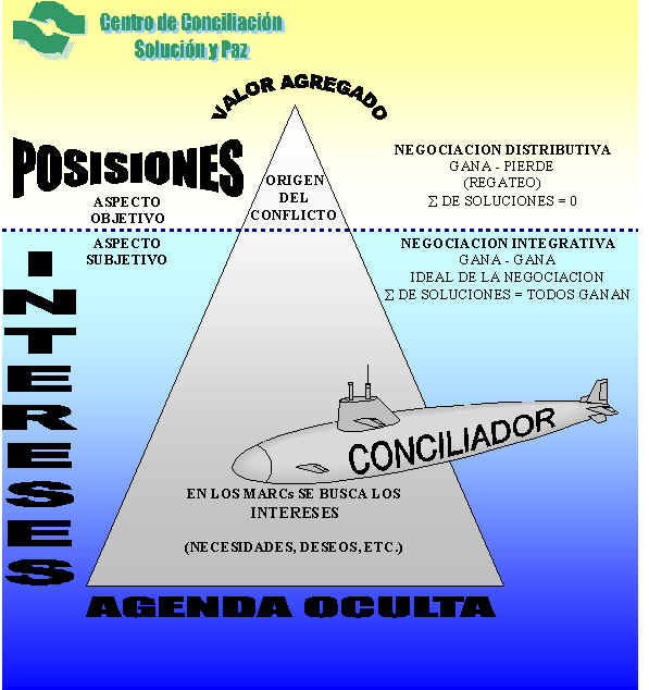 El Conciliador no debe conformarce con lo que dicen (desde las posisiones) las partes, si hace esto es que lo que busca es que lleguen (las partes) a un acuerdo de negociación distributiva (suma de soluciones es igual a cero).