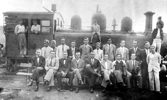 Outra Foto da Locomotiva "Barão de Campinas", nrº 3 da Itatibense, em Itatiba, com funcionários da empresa. Foto pertencente à coleção particular de Sergio Romano, enviada via e-mail. Ainda de acordo com Sergio Romano: "... a Itatibense somente teve, de sua propriedade, três locomotivas, duas Dubs da E.F. ITUANA (ex 0-6-0 bitola 3 pés reformada para a bitola métrica como 2-6-0, a "Alves Cardozo" e "Dr. Machado" e a Baldwin 2-6-2, de longerões externos, adquirida nova, a "Barão de Campinas". As fotos mais conhecidas da Itatibense foram tiradas por D. Edith Sanfins, irmã da esposa do maior acionista na época, numa das últimas viagens, com a automotriz Bondinho" construída na oficina da Itatibense, com motor Buick. Tambem teve alugada da EFS creio que por volta de 1950 a loco n°54 ou 64 (não me recordo corretamente), uma 4-4-0 que fez um tremendo fiasco, disparando, com maquinista e foguista pulando da máquina com direito de perseguição à cavalo e tudo mais. As duas Dubs foram vendidas para uma Usina de açúcar em Pernambuco. Quanto à Baldwin "Barão de Campinas" estava na Votorantim em frente á quadra de tenis da fazenda, sendo esta sua última localização conhecida..." |