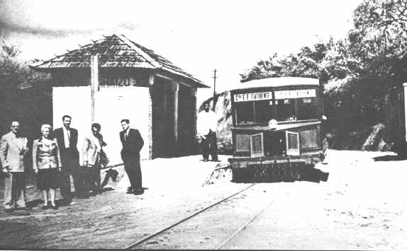 Estação de Paraízo, com automotriz parada, em foto do livro "Café e Ferrovias", de Odilon Nogueira