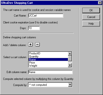| Uma caixa de diálogo aparecerá, nela você escolherá as colunas que deseja incluir no carrinho de compras. | |