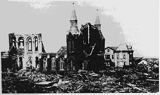 It left 1,000 survivors naked and 5,000 more bruised and battered. In a 1,500-acre area of total destruction, 2,636 houses-nearly half the homes in the city-were swept out of existence. Elsewhere, at least 1,000 more were reduced to wreckage. Not a single building escaped damage. To sum it up On Sunday, September 9th, Galveston was "a city of wrecked homes and streets choked with debris and six thousand corpses. It was a city whose very cemeteries had been emptied of their dead as if to receive new tenants."
