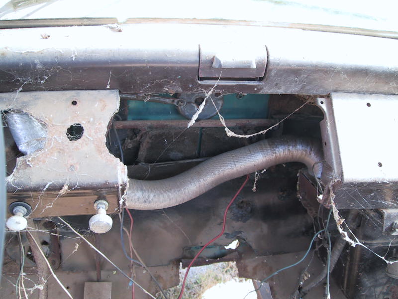 Here is the wooden dash that someone made, nicely carved, space for lots of dials, some unconnected red lights... and another picture of the original mangled dash.