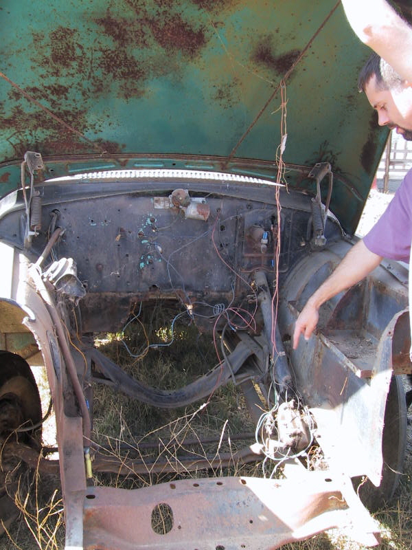 Below: The front right fender, which would hold the double headlights of the B-series.