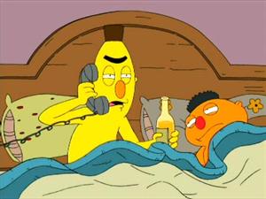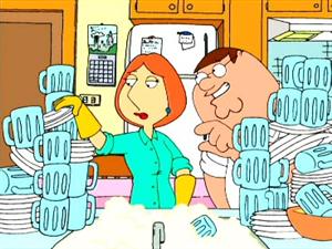 ![]() (Lois just finished cleaning the house. Peter just came back from fishing.)Look, I know you've been busy today, so I took care of dinner. All you have to do is gut it, clean it, scale it, and cook it. |