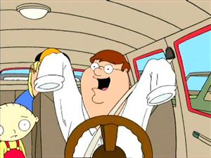 ![]() Peter, you can take off your blindfold, we're almost there. Not yet, I don't want to ruin my brithday surprise. Then at least let me DRIVE! Lois, you know it's illegal for women to drive! |