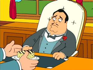 ![]() As you know, I am obligated to grant one favor on this, the day of my daughter's wedding. While you ask me for this one, and only, favor, I will sit here and enjoy this very fine tiramisu. AWWW, can I have a piece??? Granted. Next. |