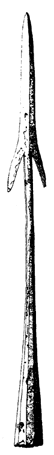 | In Widsith, R. W. Chambers says that the word ango was the same as "......(cf. our angle) similar to the 'cruely hooked spear' which in Beowulf is used to attack sea-monsters. Agathias gives a detailed description of the ango: it was a species of harpoon, and could not be withdrawn from a wound." One internet source (www.cage.rug.ac.be/~ci/naam.htm), tells us that "......Ange (later Angel), was the nickname given by the Franks to their javelin. The word still exists in Dutch; it means 'sting'. The analogy of the barbed Frankish javelin with a bee's sting is evident. The Ange was hurled through the opponent's shield. The barbs (generally two) prevented it from being pulled out and its iron-clad shaft made it impossible to chop off. Thus his opponent was forced to lower his defense. The Ange was considered to be an elite weapon." Previous Page......Next Page |