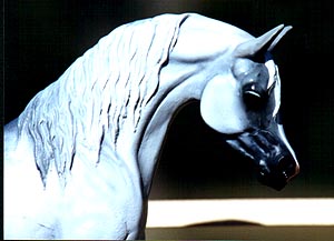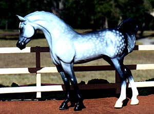 ![]() | Al-Ashab, a gorgeous dapple grey Amarna Arabian stallion resin painted by Elizabeth Bouras in 1998. |