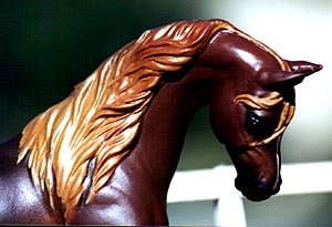 ![]() | Caillot, a dark burgundy chestnut Arabian mare. When I got her she had a rather ugly grey paintjob and she was starting to flake off, so I sanded the trouble spots down and fixed her up to this lovely color! |