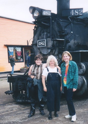 Me 'n' my mom 'n' Beth in front of one o' Durango-Silverton Narrow Gage Railroad (DSNGRR)'s three steam engines. Yes, we actually got to ride on the thing. For 7 hours. Well, at least it was pretty countryside the whole time. Rivers 'n' lakes 'n' streams and whatnot. And it was fun hangin' outta the train to take piccies... even though I wasn't s'posed to...