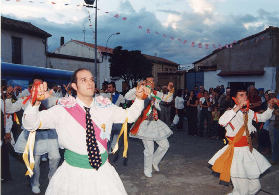 Los danzantes de Villamañán actúan a la salida de la Misa bailando hasta la Plaza.