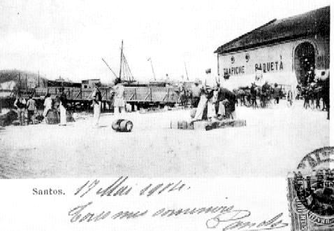 O Cais do Porto de Santos sempre apresentou-se com muito movimento. Na época, a área nobre da cidade era justamente os bairros no entorno do cais, pois alé estava o movimento e o comércio, além da prefeitura, correios, etc... As praias (hpje bairros nobres eram locais ermos e afastados). Nas fotos abaixo um pouco da agitação no Cais na virada do século. |