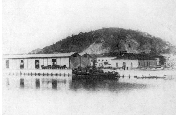 construção do Porto de Santos. Foto do acervo da RFFSA