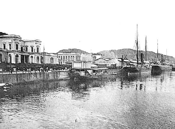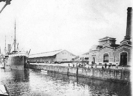 com a Alfândega. Ao longe, os escritórios da Cia. Docas. Foto de
