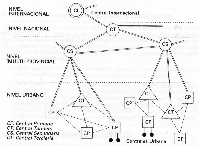 El gran número de usuarios y el alto tráfico que una red de telecomunicaciones debe poder soportar, hace que sea necesario no sólo el agruparlos por áreas geográficas, sino también hacerlos depender de varias centrales de conmutación que tengan acceso entre sí o a través de otras. Aparece el concepto de "jerarquía": dado que el número máximo de usuarios que una central admite es limitado, mayor o menor dependiendo de su categoría, es necesario una vez que este se supera, el concurso de más centrales de conmutación para atenderlos, y cuando el de estas centrales es alto, se necesitan a su vez otras centrales de mayor nivel para gobernar la comunicación entre ellas.