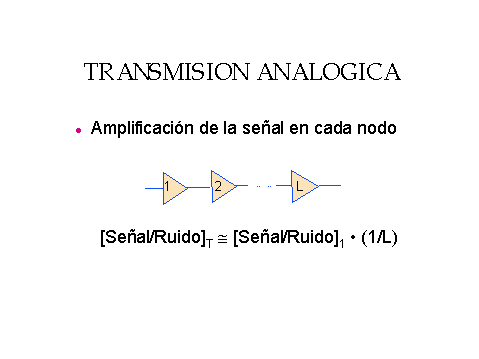 Durante el proceso de transmisión, la señal va pasando de nodo en nodo. La distancia entre nodos reduce el nivel de la señal transmitida (la señal va perdiendo potencia en función de la distancia, (Figura 5). Si la transmisión es analógica, es necesario que cada cierta distancia la señal deba amplificarse para efectivamente alcanzar su destino lejano.