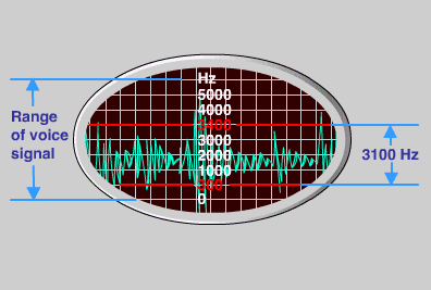 El punto fundamental de la transmisión analógica es el canal telefónico o canal de voz. El "canal de voz" implica una ocupación espectral, ya sea que la trayectoria de voz se lleve a cabo mediante par físico, radio o fibra óptica. El contenido básico de la señal de voz ocupa una banda de frecuencias estrecha (300 a 3400 Hz). Por tanto, se puede decir que el canal nominal telefónico ocupa la banda de 0 a 4 kHz, aunque en realidad ocupa un rango de 3100 Hz (ver Fig 7).