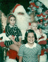 My sisters, Mary (in front) Amy (on the left, and me (on the right) with santa (on the bottom).