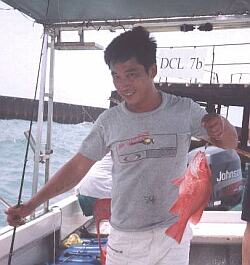 | Caught a 'sixbar grouper' | Jason with his 'tuskfish' | ||||||||||||||||||||||