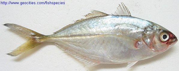 Herring Scad Alepes vari Carrangidae [Jacks & Pompanos] 21.3 cm [max to 56 cm] 5.7 cm 90 gm Marine, brackish. Minor commercial fisheries. Yes, this fish was caught off the channel btw Pasir Ris & Ubin. Pelagic. Shallow coastal waters near surface. At a glance, it may look like those common 'selars' found in the mkt but it's not. Body shape of this fish is much broader. Black blotch on the operculum is indistinct or even absent. A pretty large scad species. Dorsal spines:9, rays:23-25 ; Anal spines:3, rays:20-23. Scutes:48-69 on straight lateral line. Credit goes to 'Kelvin KP Lim' in helping in the ID of this fish |