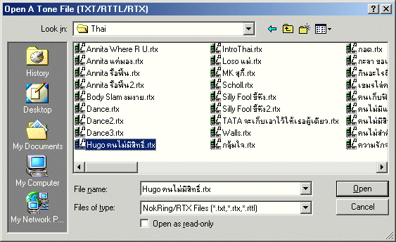 เลือก File (Format txt,rtx,rttl) ที่ต้องการแล้วกด Open