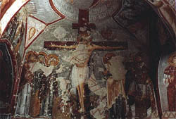 Inside one of the many "cone churches" in Cappadocia.