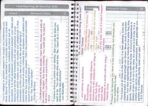 Take a look at my lahvely planner from 2001. No wonder i failed most of my exams, i spent more time doing this than i did on coursework. ~sigh~.