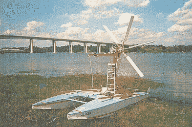 Speed was about the same on all points of sailing. (For running before the wind, the blades are feathered, and the craft driven by "drag".)