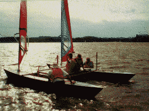 The Fun Sailer would be an attractive option for sailboarders because it has been developed to satisfy the needs of the family man - and they could use their sailboard sailrigs on it.