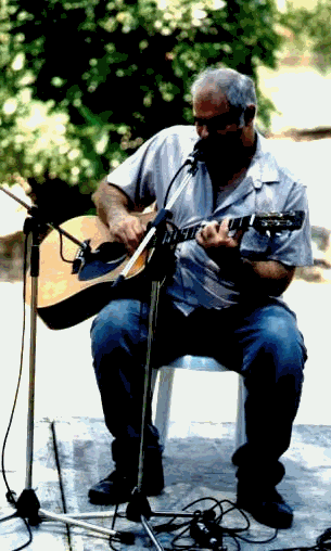 Dave Rovics, a modern troubador who performs both his own original songs alongside more traditional and well-known folksongs. His repertoire includes titles such as Minimum Wage Strike, The Death Dave Rovics of David Chain, Song for Boxcar Betty and Parking Lots and Strip Malls. He's got a bag full of protest songs - labor, environmental, etc. He's a wonderful performer, accompanying himself on his guitar. Dave is American but has recently relocated to Hamburg, Germany. See Calendar for a location near you.The Ballad of the Joe Alon Jam Come all you FolkStuff'niks, wherever ye be, Yes, drop what ye're doin' and listen tae me, Don't talk out of turn and don't shoot off yer mouth, And ye'll hear of a jam session held way down south. Chorus: Hey-yey daroma, it's not so very far, Hey-yey daroma, etceter-eter-ar. Well, the folk who came down to the Joe Alon Grove Had no notion of seekin' a rich treasure trove, They played for sheer fun and their spirits were cheered, 'Twas a heartwarming hoot -- once the garbage was cleared. Chorus: Sing hey-yey daroma, we hung out all our flags, Hey-yey daroma, but bring some plastic bags. First Larry and Yuval and Mark, I must name, And Carol and Ari, of mandolin fame, Not to mention Moshe from far-flung Yerucham, And Miriam and Myron from Moshav Sde-Nitzan. Chorus: Sing hey-yey daroma, bring sandwiches and fruit, Hey-yey with Lori, Margo'n Amiel to boot. Now Yuval's a sabra who sang Scottish lays, Evr'y last bloody word, till we were all in a daze, That's why Larry Gamliel prefers rock n'roll, And Dylan and Springstein and Simon and Soul. Chorus: Sing hey-yey daroma, the sun was shining fair, Hey-yey daroma, we'd room enough to spare. Now Ari and Judi had us tappin' our feet, While Mark's guitaron laid down a great beat. We all joined in song till the valley was ringin' With the help of two copies of "Rise up Singin' Chorus: Sing hey-yey daroma, forget your daily care, Hey-yey daroma, to the Londonderry Air. What we lacked in sheer numbers we made up in style, So loudly proclaim from Yarmukh to the Nile, If music's your bag, if you revel in song, Then the hills of the Negev are where you belong. Chorus: Hey-yey daroma, it's not so very far, Hey-yey daroma, etceter-eter-ar. --Amiel Schatz MILESTAINES Happy birthday to Don Ganchrow, Sue Tourkin-Komet, Deborah Fields, Nechama Silberman, Shelley Ellen Yemini. Happy anniversary to Marc Clarfield and Ora Paltiel NOT TRAD ADS - fee is NIS 10 (NIS 5for members). **SHELLEY ELLEN guitar lessons available for performances (03)674-5356. **For Sale: Franco Esteva concert model (top of the line) classical guitar with Scudero pickup, plus hard wood case, in MINT condition. Contact Marc Gittelson (02) 671-6803 or (053) 962-600 or NURSEMARC@NEWMAIL.NET **Jill Rogoff's "The Celtic Cradle" and "Across the Narrow Seas" (ALC 129) are available on cassette (NIS 40) or CD (NIS 60). Tel/Fax (02) 679-0410. **Bar/Bat Mitzva or Weddings: Have a foot- stomping party with Debby Elnatan, fiddler & caller, square and line dancing, clogging. Have wheels, will travel. (02) 678-9778, 053-806-281. ADVERTIZEMENT TARIFFS FOR FOLKNOTES MAGAZINE - available on request DISCLAIMER: FolkNotes is the official publication of the Israel Folkstuff Society. Views are those of the writers, not necessarily those of IFS. FolkNotes and all of the articles, photographs and material contained therein are, unless otherwise noted, copyrighted by IFS 1999