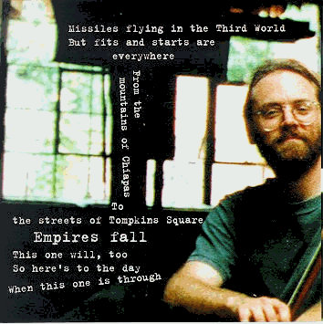 Contents - 4th A.A.C.I. English Song Contest - Dave Rovics - Marc Miller -I Came For The Music - Southern Jam - Square Dance Evening 4th A.A.C.I. English Song Contest The A.A.C.I. Song Contest is not only Folk Music -- but because so many Folkies entered the contest, placed, and attended the Finals in Beer Sheva -- it is fitting that we report the goings-on. Linda Kanpol, the 1998 winner, began the evening with her winning song, "Loving You More," followed by Roby's own "There'll Be Music." The first finalist was Matthyu Simply, who sang with Annie Bakalu "Daddy's Farm," a gentle and poignant memory of his youth. We were then treated to the slightly heavier feel of Ziva Hadar's "Next," which received one of the two Encouragement Awards. Third up were Judith Paul-Litoff and Rahel Jaskow who gave a sensitive rendition of Mindy Kornberg's "Echoes of Memories," which took Second Place in the audience vote, and was awarded Third Place by the judges. It was then the turn of IFS stalwart Larry Gamliel on synthesizer, who backed Marcie Schreier's tender vocals in his original "Fools that Care," earning Fourth Place in the judges' vote . We continued with "Absolute Truth Blues," an interestingly titled essay written and performed by Michal Rogson. Next, Dmitry Greenberg softly sang his love song, "Waiting in the Rain," which received Second Place from the judges.