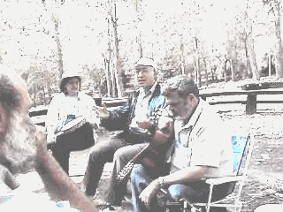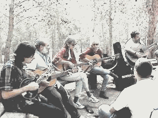 Jam in the Forest Somehow I have the Teddy-bear's Picnic bouncing around in my mind. We weren't furry woodland creatures perhaps, but we did gather in the woods adjacent to the Joe Alon Center on Friday the 12th for a jam picnic. It was advertised all around. Indeed the date was selected so as to allow our religious friends to partici- pate. However, just a handful of folks showed up. That turned out to be quite nice as we had an intimate picnic followed by an intimate jam.