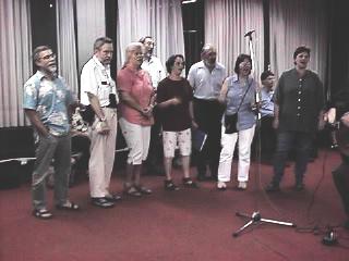 The evening ended with Larry Gamliel, who explained that Israel FolkStuff Society had recently been registered as an 'amuta', and then led everyone in singing If I had a Hammer and a 60s song from the 19th century: Hard Times. And we're still left trying to decide what we should be called in Hebrew: Chavura Israelit LeZemer, Pizmon Veshir? Chavura Israelit Leshirei Am? (the crux is that 'folkstuff' includes so much more than 'song' and 'folklore') I really can't decide what I like for ‘folkstuff'. If we use 'dvarim' for 'stuff' we end up with 'divrei amim' which sounds like a history text. [and we need 'amim' because 'am' is used for Israeli (like 'rikudei am' as distinct from 'rikudei amim').] If it were Latin we could use Res Populorum – except for in the case of the Taverners when Res Vulgae might be more apt. --Janet Lerner Floating Like Flies and Singing like Bees - a little more on the radio show.The next program will be recorded shortly after the end of the holiday season. Look for it. Also look for a CD of the first program in its entirety. Watch these pages for details. A Guid Sang Is Forever At a recent Folk Evening at Kibbutz Tzora, Ray Scudero sang an old song of his, written for a girl in summer camp by whom he was smitten. When asked if it did the trick, he wryly answered "no". At this point, Marc Gittelson made a splendid comment, which is the basis of the following ballad.