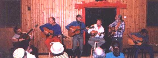 Keltic Konnections "What's the single most common misconception about Scottish music? That it's Irish!" commented Paul Jennings (the drummer for Old Blind Dogs) in a recent North County Times interview. Scottish music really has its own sound. Amazingly, San Diego County is home of the Highland Games and host to the Black Watch and just full of Scots. I'd like to share some of my favorites with you. Old Blind Dogs. Venue: Oceanside Public Library. This is a band that started its current tour in the Kennedy Center in NY and it can stand on its own, either as an instrumental or as a singing band. We chanced upon their music in the early 90's whilst in Scotland and their tapes have always been among our most frequently played. We were a little nervous when we learned that 3 band members had been replaced and African drums added; but we weren't disappointed in any way. Their other main instruments include bagpipes, low D penny- whistle, and other pipes, citterns and guitars. Their music features smashing fiddling and harmonies by veteran Jonny Hardie while the lead singer, Jim Malcolm, captures all the buoyancy and spirit of the earlier group, singing originals and traditionals in Scots and Doric dialects. Greeeat! Well worth a listen and now Green Linnet Records has picked them up. Highly recommended: The World's Room, (GLCD1201). They're on websites such as www.stoneyport.demon.co.bio/obd98gigs.html and they were interested to know there are folk in the know in Israel. Men of Worth. Venue: A Methodist Church in Encinitis. If singing with the instruments is your thing, you're gonna love Men of Worth. One laddie from Ireland (Jimmy Keigher), one from Scotland (Donnie Macdonald), together they make a very big sound accompanied by banjo, mandolin, accordion, bodhran and 12 string guitar. They do traditional music, whimsical music and I loved their treatment of the contem- porary dilemma of being "an exile" -- facing mixed emotions of attachments to roots long severed in a place far away. Not sappy sentimental, but very "right on" songs. My recommen- dation is a CD/tape called In Full Flight (Mahog Music MMCS203). Not their latest, but it had those songs I loved the most on it. One of their websites is: www.menofworth.com They also expressed interest in Israel as part of a tour. Check them out. Alasdair Fraser. Venue: Antique Tall Ship anchored in San Diego harbour. Alasdair is an understated, virtuoso fiddle happening, what can I tell you. He must be soof an international treasure, being a storehouse of traditional tunes, and he writes his own tunes as well. In the end he had everyone following him and his singing fiddle up the stairs from the belly of the ship onto deck for proper dancing, as the music always intended. Fraser records for Culburnie records and worth a listen is Return to Kintail recorded with guitarist Tony McManus. Check out www.culburnie.com for more information. All of these performers had good humor and warmth on stage and off. There were a lot more, and virtually all good, but those are my top three picks in this category for now. I especially love the small venues and the under $20 tickets (sometimes at a bargain $6!). It's truly amazing>. --Judi Ganchrow