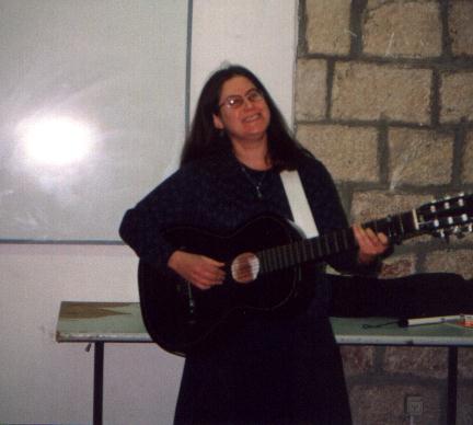 Rahel Jaskow First about the woman, and then the dues. Rahel Jaskow was born in New York City, but when she was seven, her family moved way beyond the suburbs to rural Monroe. At first she stood out academically: she was what you might call a rather smart cookie. However, as she is wont to muse a bit ruefully, smart cookies do not necessarily stand out in the baking pan of teen social life. So she compensated by developing a dream. At eleven, she went to Jewish summer camp and learned Shabbat songs for the first time. Ever since then, she says, she carried the songs in her mind along with the harmonies she created, and waited for the time they would emerge to be heard by others. In the interim, she studied drama and English literature, and worked as a DJ at a National Public Radio affiliate in Rochester, New York. Those of you who remember Radio West may well recall Rahel's dulcet tones as she presented the Sabbath Eve program. In her late teens Rahel became observant. During college and afterwards, she visited Israel several times as an army volunteer. Even as a little girl, she had fallen in love with Hebrew music. After her fourth stint in Israeli khaki, Rahel packed all her belongings and made aliya. Well, she did, but her belongings didn't. They were thrown off the ship during a storm at sea. (Rahel, the daughter of a former Merchant Marine seaman, mourned the loss of her belongings but notes with gratitude that the ship and her crew made it safely to port.) And so Rahel arrived in Israel. She did a final volunteer spell in the army, then made her way to Jerusalem. While working at her day job, she discovered she had a knack for healing. So she studied with Yonina Jacobs, a decision that changed her life. (One of Rahel's many enduring traits is her willingness to use her healing hands on tight muscles and aching bones. I can tell you from personal experience, it is so very nice.) It was inevitable that Rahel's beautiful voice began to attract attention. I first heard her perform at the second AACI song festival in 1997. For me, it was love at first sound. Shortly after that, she realized one of her ongoing dreams when she was introduced to Shuly Nathan, who first sang Naomi Shemer's Jerusalem of Gold. A fast friendship developed between them, and now Rahel occasionally accompanies Shuly in concert. Rahel insists that she does not regard herself as a folk singer per se. But none of the folkies who heard her would agree. As a result, she kept getting invited to home hoots and folk clubs where she met an increasing number of singers and musicians upon whom she made a profound impression. She began to be invited to perform, first as a vocal accompanist and then as a solo performer in her own right. She has appeared all over the country and has captured the hearts of all who've heard her.