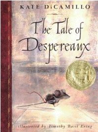 The title of my book is "The Tale of Desperaux" it is written by Kate DiCamillo. The genre of my book is fiction. I have not read any others by this author. The main settings are: the castle walls and the dungeon. Nothing really got me interested into reading this book. This story starts off in the castle walls when a small mouse named Despereaux was born who was abnormal with such big ears. One day he saw a human princess and talked to her but his brother saw him and talking to a human defies the laws of the mice so he was sentenced to: DEATH. Will Despereaux survive? Or will he die?