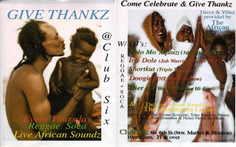 Francisco Bay Area, events at Club 6 "Give Thankz" represent an