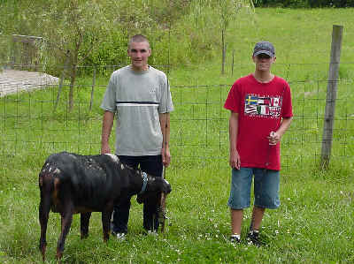 The Spring's are friends of ours that have a century house (over 100 years old). I realize that's not real old if you're reading this from France, but this area of Ohio was only settled in the early 1800's. They have a small pond where the kids can fish and also keep goats. This one decided it wanted to eat Thibault's fishing pole I think. Matt is on the right.