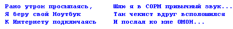 Авторы указанных сайтов конечно же не претендуют на полноту информации и официальное представительство от имени "силовых" ведомств. Вэб-страницы специально сделаны в "прикольном" стиле, чтобы посетители не спутали их с настоящей приемной на Лубянке. Но если народ начнет всерьез "стучать", то вэб-мастер обязуется сохранить конфиденциальность и переадресовать почту кому надо и куда следует.