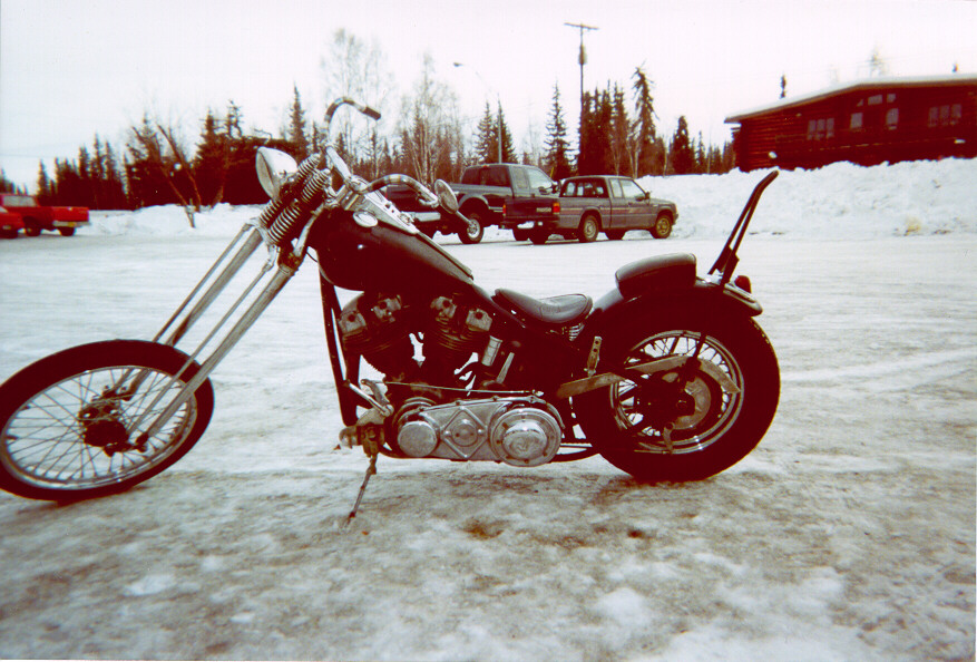 Lee's long shovelhead hand-shift choppa