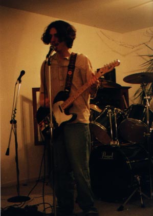 | Josh's Bio Instrument: Rhythm guitar, lead and backup vocals, target for drumsticks and stinging barbs from co-workers. Birthplace: Manhattan, NY Age: 16 Nationality: Global Mutt Favorite Music: The Beatles, Dylan, Tom Waits, Leonard Cohen, The Band, BB King, all blues, Foo Fighters, Counting Crows, Guster, D.T, Kessler, Future Sound Of London, everything else. How he became included in the band: Growing up in the oppressive town of wappy falls, was teaching himself guitar, Nicole learned bass. We played in a lousy "band" in which the practices consisted of 5 or 6 people squeezing into a little room in between the cracks in the drumset, playing really loud, badly and not with the beat, and one dude tripping over his pedal every couple of minutes. It sucked. Needless to say, Nicole and Josh decided to blow that fascist popsicle stand, and they formed a group, bass, guitar and vocals, entitled Food, Gas and Lodging. After playing 3 or 4 gigs, they decided that they needed something else in the mix, so they recruited Drew and Dan, played that coffeehouse gig, and were approached by Mike the drummer. The rest is history. So was born Further. Equipment- 1996 Sparkle Blue Fender Telecaster named Suzanne, 2001 Walnut Flat Ibanez S520, 1998 ebony Epiphone Chet Atkins standard aptly titled lili marlene, Early 1980s guild Jumbo 12-string, Natural finish w/black pickguard and mother-of-pearl inlay on the headstock, Yamaha C-40 Classical Guitar Fender Princeton 112 plus 65 watt amp, Big Muff Pi Distortion, 2 Boss Flangers, Graphic EQ, Dunlop Crybaby Wah (which Dan the man happened to "give" me) and Icebox Stereo Chorus by DOD, I think (which happens to be drew's, he hates it so he gave it to me, lol...) Ernie Ball hybrid slinky strings, fender and pickboy picks (for anybody who cares about this, haha). |